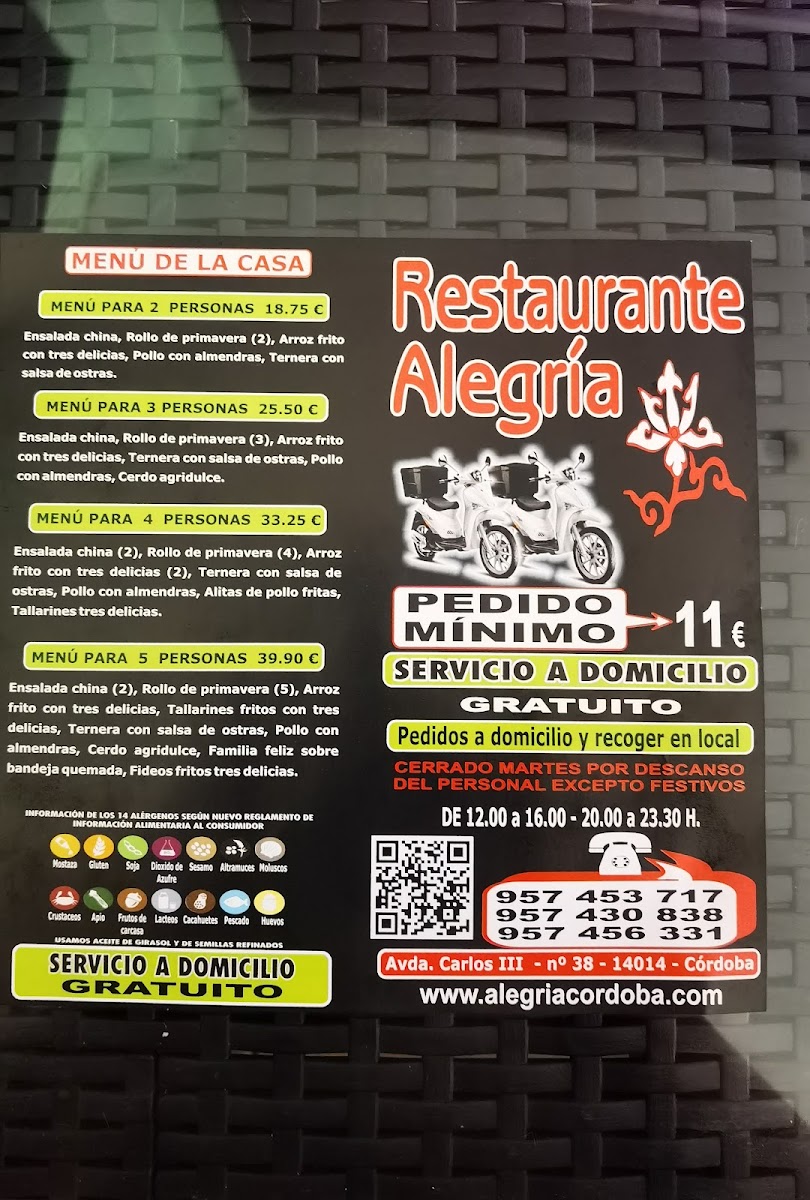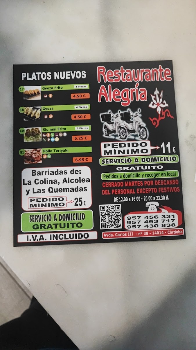 Welcome to Restaurante Chino la Alegría, a delightful gem located at Av. de Carlos III, 38, in Córdoba, Spain. This charming establishment is renowned for its authentic and flavorful Chinese cuisine. Customers rave about the punctual delivery service, typically arriving in just 40 minutes, making it a convenient option for busy diners.